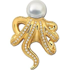 18K Yellow Gold Paspaley South Sea Cultured Fine Oval Pearl and Diamond Octopus Brooch: Jewelry