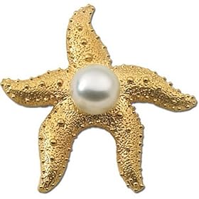18K Yellow Gold Paspaley South Sea Cultured Fine Flat Button Pearl Starfish Brooch: Jewelry