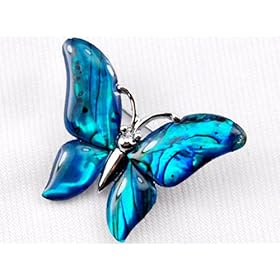Small Watermarks Glossy Abalone Shell Winged Butterfly Silver Tone Pin Brooch: Jewelry