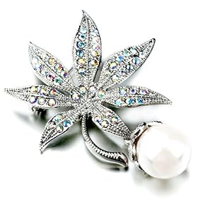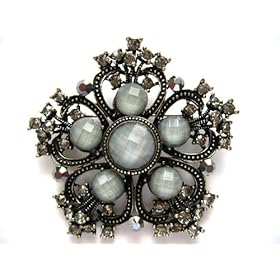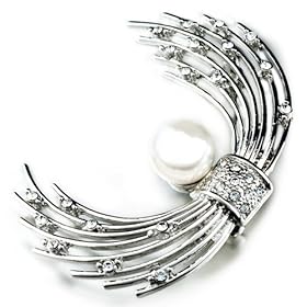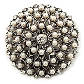 Wedding Corsage Faux Pearl Crystal Brooch (Antique Silver): Jewelry