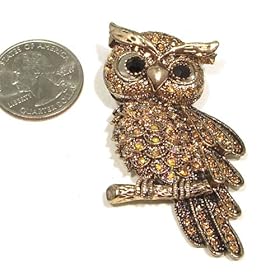Yellow Topaz Austrian Rhinestone Owl Bird Gold-Plated Brooch Pin / Pendant: Jewelry