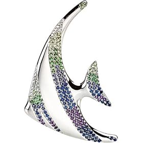 14K White Gold Multi-Gemstone and Diamond Angel Fish Brooch: Jewelry