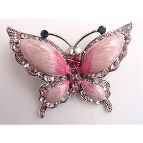 Vintage Repro Czech Crystal Rhinestone Rose Pink Butterfly Fashion Pin Brooch: Jewelry