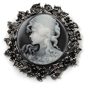 Vintage Round Crystal Cameo Brooch & Pendant (Black Tone): Jewelry
