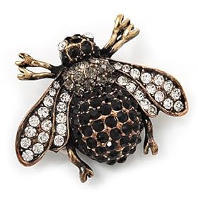 Vintage Diamante Bee Brooch (Burn Gold Metal): Jewelry