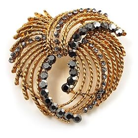 Vintage Antique Gold Bow Crystal Brooch (Jet Black): Jewelry