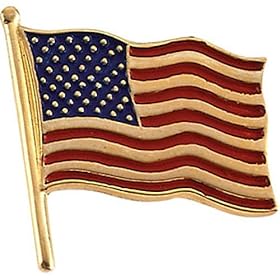 14K Yellow Gold Enamel American Flag Pin: Jewelry
