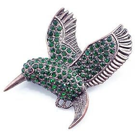 Vintage Style Emerald Hummingbird Austrian Crystal Bird Pin Brooch: Jewelry