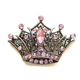Vintage Inspired Pink Crystal Rhinestone Princess Queen Crown Fashion Pin Brooch: Jewelry