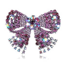 Vintage Inspired Fuchsia Rose Crystal Rhinestone Silver Tone Bow Pin Brooch: Jewelry