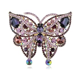 Vintage Inspired Amethyst Crystal Rhinestone Large Moth Butterfly Pin Brooch: Jewelry