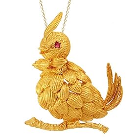 18K Yellow Gold Womens Ruby Bird Brooch 0.04 Ctw: Jewelry
