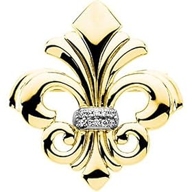 14K Yellow Gold Diamond Fleur de Lis Brooch - 0.10 Ct.: Jewelry