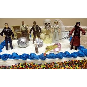 Exclusive, Indiana Jones 28 Piece Birthday Cake Topper Featuring 5 Indiana Jones Posable Figures and Accessories , Skull, Run Away Boulder, Jewels, Keep Out Signs, 10 Building Blocks, Artifacts, Snake, 3 Gold Coins, And A Treasure Chest Cake Decoration: Toys & Games