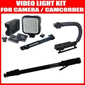Essential Camcorder Accessory Kit For Panasonic SDR-H18, SDR-H80, SDR-H85, SDR-H100, SDR-H100K, SDR-H101, SDR-H200, SDR-S7, SDR-S26, SDR-S50, SDR-S70, SDR-S70K, SDR-S70S, SDR-S50A Standard Definition Camcorder Includes Deluxe Bracket Camcorder Action Stabilizing Handle + 36 Array LED Video Light Kit with Support Bracket + 2 Li-Ion Batteries and Charger + 67" Light Weight Monopod: Camera & Photo