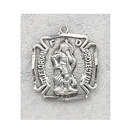 Sterling Silver St. Florian Medal with 18" Rhodium Chain in Gift Box, Patron Saint of (Patronage) Fireman, Fire Fighters, Against Battles, Against Fire, Austria, Barrel-makers, Brewers, Chimney Sweeps, Coopers, Drowning, Fire Prevention, Firefighters, Floods, Harvests, Linz Austria, Poland, Soap-boilers.: Jewelry