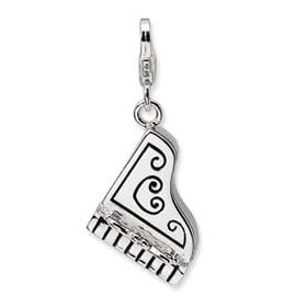Sterling Silver 3-D Enameled Grand Piano w/Lobster Clasp Charm: Jewelry
