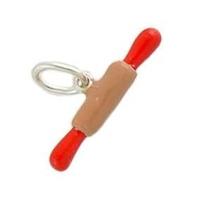 Red Handle Rolling Pin Vintage Style 925 Sterling Silver and Enamel Traditional Charm or Pendant: Jewelry