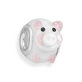 Sterling Silver Glass Charm Bead Pig - Compatible with Pandora Biagi Troll Zable: Jewelry