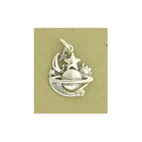 Sterling Silver Charm, Cresent Moon, Saturn, Sun, Shooting Star, 5/8 inch: Jewelry