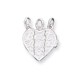 Sterling Silver Best Friends 3-Piece Break Apart Heart Charm 18mm - JewelryWeb: Jewelry
