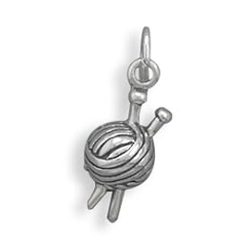 Sterling Silver Charm Pendant Ball of Yarn with Knitting Needles: Jewelry