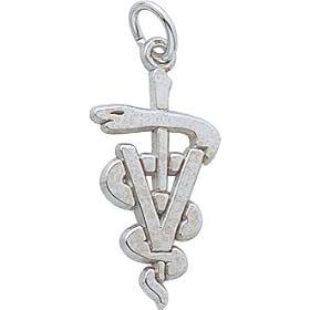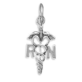 Sterling Silver Registered Nurse "RN" Caduceus Charm: Jewelry