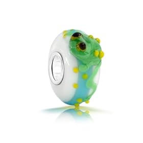 925 Sterling Silver Murano Glass Cute Green Frog Pandora Style Bead: Jewelry