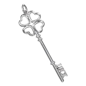 Sterling Silver Four Leaf Clover Key Pendant with "Luck" Bit: Jewelry