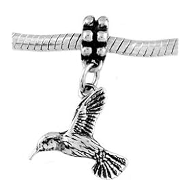 Sterling Silver Flying Hummingbird Dangle Bead Charm: Jewelry