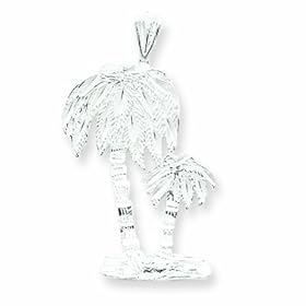 Sterling Silver Diamond Cut Palm Trees Pendant Charm: Jewelry