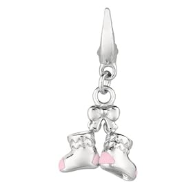 Sterling silver and Enamel PINK BOOTIES (Charm): Jewelry