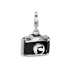 Sterling Silver Cubic Zirconia and Black Epoxy Purse Charm: Jewelry