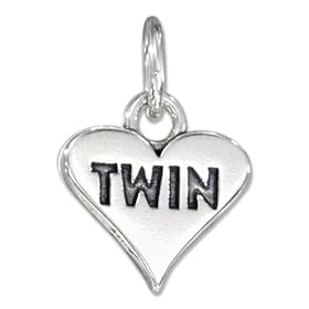 Sterling Silver High Polish Heart with "Twin" Charm: Jewelry
