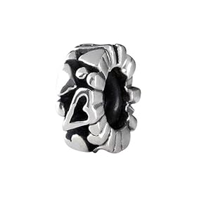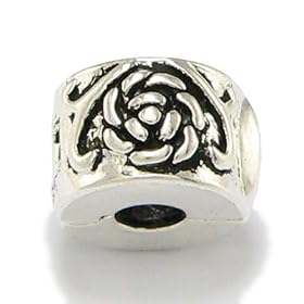 Scrolled Rose Locking Spacer Charm - Fits Pandora Charm Bracelet & Charm Necklace - Silver Plated: Jewelry