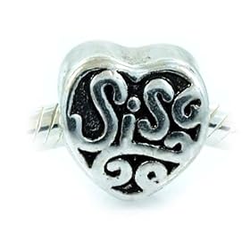Sterling Silver SIS with Flowers Sister Bead for European Charm Bracelet: Jewelry