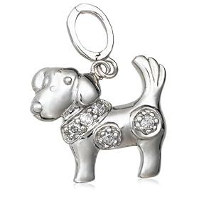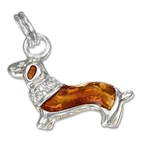 Sterling Silver Enamel 3D Dachshund Charm with Cubic Zirconias: Jewelry