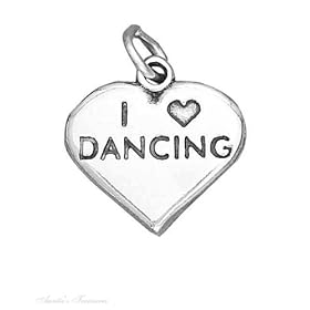 Sterling Silver "I Love Dancing" Heart Message Word Charm: Jewelry