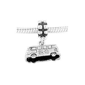 Sterling Silver Hippie Groovy Bus Dangle Bead Charm: Jewelry