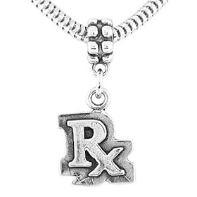 Sterling Silver Pharmacist Rx Symbol Dangle Bead Charm: Jewelry