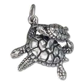 Sterling Silver Three Dimensional Mother and Baby Turtle Charm: Jewelry