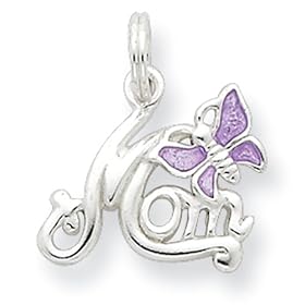 Sterling Silver Polished Mom Butterfly Enameled Charm: Jewelry
