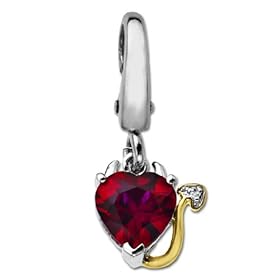 XPY Sterling Silver and 14k Yellow Gold Created Ruby with Diamond-Accent Heart Charm (0.004 cttw, I-J Color, I2-I3 Clarity): Jewelry