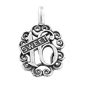 Sterling Silver One Sided Filigree Fancy Sweet 16 Charm: Jewelry