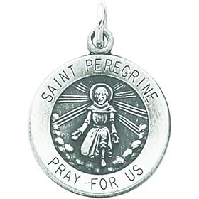 Sterling Silver Saint Peregrine Round Medal: Jewelry