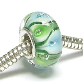 Sterling Silver Round Murano Green Glass Bead For European Charm Bracelets 13mm: Jewelry