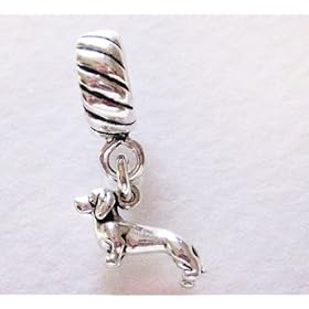 Sterling Silver, Teeny, Tiny, Dachshund, Doxie, weiner dog Charm, Bead,fits European, Large Hole: Everything Else