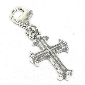 Sterling Silver Holy Cross Dangle F/ European Clip On Chain Link Charm Bracelet W/ Lobster Clasp: Jewelry