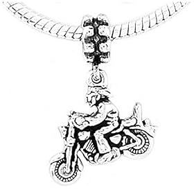 Sterling Silver Man Riding Motorcycle Dangle Bead Charm: Jewelry