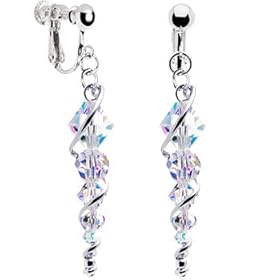 Handcrafted Austrian Crystal Sterling Icicle Drop Clip Earrings: Jewelry